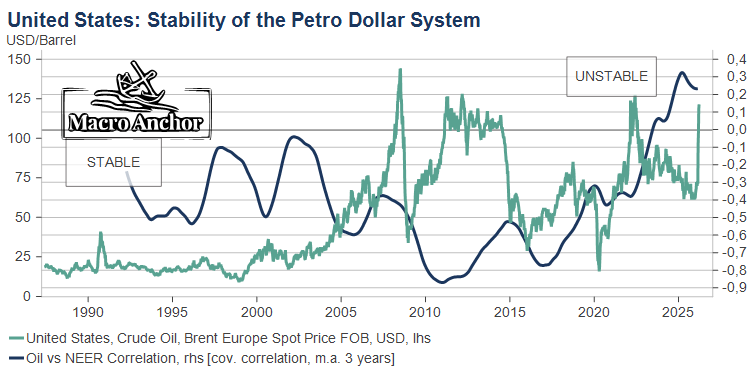 If that break occurs, it will not be gradual, and its significance will extend far beyond the currency itself, because it will signal that the strategic alignment at the heart of the petrodollar system has fractured, that reserves will begin to diversify, that oil revenues will no longer automatically return to U.S. markets, and that the relationship between oil and the dollar will be fundamentally altered, since higher oil prices will no longer guarantee stronger dollar inflows but may instead accelerate the shift away from dollar concentration, turning what was once a reinforcing mechanism into a dilutive one.
